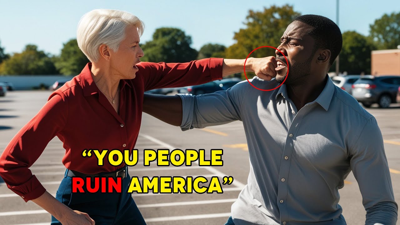 racial confrontation he took a breath determined not to let it get under his skin look I’m sorry if you were waiting but the spot was empty I didn’t cut you off don’t you talk to me like that she snapped her voice Rising with each word I’ve had enough of you people thinking you can do whatever you want you’re all the same entitled disrespectful and thinking the rules don’t apply to you Michael clenched his fists willing himself to stay calm ma’am I’m just here to buy some groceries I don’t want any trouble it’s just a parking spot her